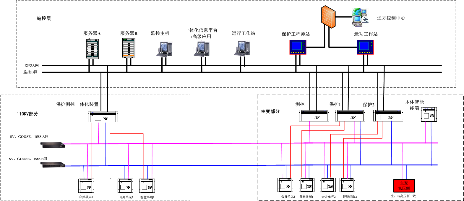 国家电网公司智能电网智能小区试点变电站,历程层SV、GOOSE、IEC61588三网合一。